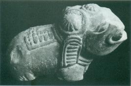 | Description / विवरण | This is a delightful portrayal of a decorated elephant produced in the round. The back of the elephant is decorated , while stamped decorations adorn its head and lines indicate the wrinkles on the long ears. |