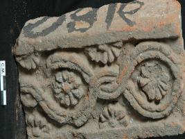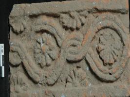 | Description / विवरण | The plaque depicts floral motif in between the geometric designs. |