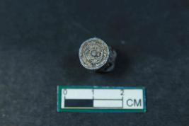 | Description / विवरण | Dual sided stamp with denticulated edges on one side and circular impressions on other side having rough surface. |