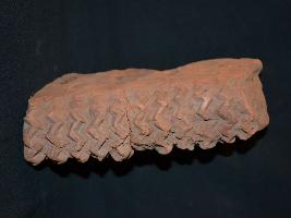 | Description / विवरण | The temple terracotta plaque depicts geometric motif. |