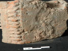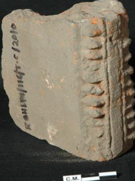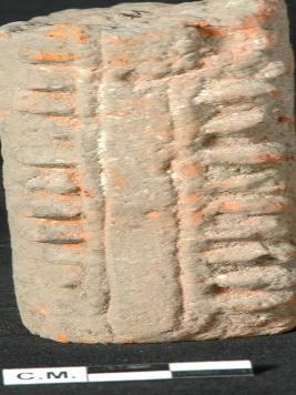 | Description / विवरण | A designed plaque with horizental lines and dots. |