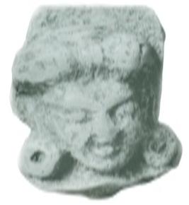 | Description / विवरण | A broken plaque with only the head preserved. It depicts the head of a female with a trifoil coiffure eroded on top and earrings. Her eyes are shut. |
