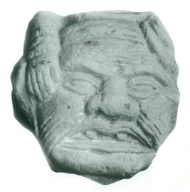| Description / विवरण | This is the representation of a grotesque head with a wrinkled forehead and a hand on his head. There are wrinkles on his nose and cheeks too and the figure has his mouth open baring his teeth. The hand placed on his head evidently belongs to another figure, now lost. The purpose of the plaque remains unexplained. |