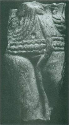 | Description / विवरण | A fragment of a large plaque depicting the torso of a female figure adorned with the characteristic triple stringed girdle. The folds of the garment have been carefully indicated in the present specimen, while the left hand may be discerned resting on the waist of the figure. |