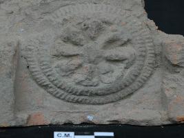 | Description / विवरण | Fragmented plaque with floral motif inside a circle. |