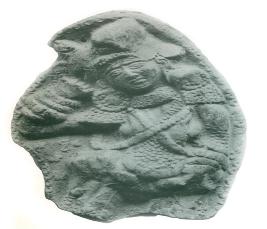 | Description / विवरण | A fragment of a damaged plaque representing a bejewelled lady adorned with chhannavira heavy bangles and large earrings. The lady is depicted touching her earrings with her hand. This device is frequently encountered in the early traditional art of Bharhut and the early sites of Deccan and western India.The plaque in high relief portrays the round cheeks, hands and large eyes with a distant contemplative gaze. The portrayal is rather realistic. |
