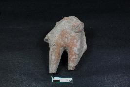 | Description / विवरण | A fragment of human figurine having two broken stumpy legs, one hand with fingers placed on waist and rough surface. |