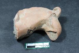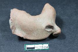 | Description / विवरण | Fragmentary head of an animal figurine with prominent snout and pinched out mane having smooth surface. |