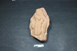 | Description / विवरण | Fragmentary plaque depicting female figurine with prominent Usnis, Kundalas, traces of facial features, ornaments, bust, one hand akimbo and lower garment having rough surface. |
