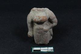 | Description / विवरण | A fragment of female figurine having prominent breasts, slender waist, one hand Akimbowhile other is just hanging with marks for drapery and rough surface. |