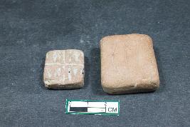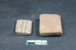 | Description / विवरण | Two cubical weights with quadrant incisced lines on one side and linear incised lines on other side having smooth surface. |