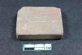A rectangular weight with linear incisions having smooth surface.