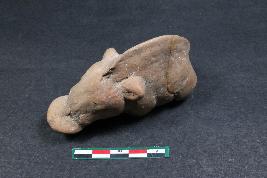 | Description / विवरण | Animal figurine Pig with in a sitting posture with prominent facial features, rib and hollow base having smooth surface. |
