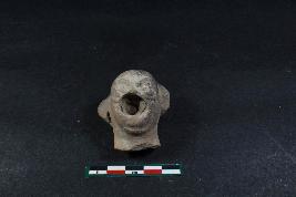 | Description / विवरण | A human head with applique eyes , deep hole in the middle .It has prominent chin and ears and have rough surface. |