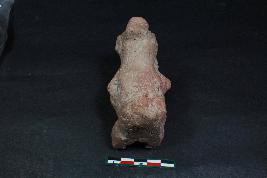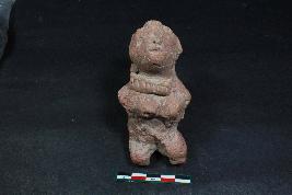 | Description / विवरण | A female figurine with prominent breast and eyes , nostrils are shown by pinholes . It has ornamentation around its neck , bun on the top of its head.Its legs and hands are broken and have rough surface. |