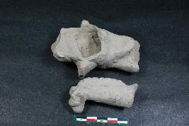 | Description / विवरण | Fragmentary Animal figurine with prominent snout having rough surface. The other fragment horse head has snout,crest and decorated head. |