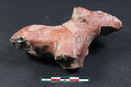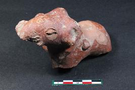 | Description / विवरण | Fragment of an animal figurine with prominent eyes and applique ornamentation around its neck having rough surface. |