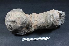 | Description / विवरण | Fragment of a human figurine with prominent applique eyes, lips and ears having rough surface |