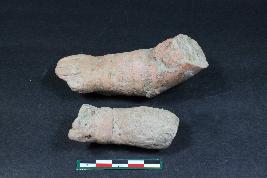 | Description / विवरण | Fragments of two legs with fingers marked by incised lines and one of the leg is wearing applique anklet having rough surface. |