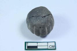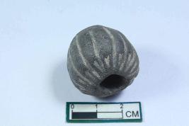 | Description / विवरण | Spherical bead with incised line marks and smooth surface. |