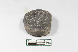 | Description / विवरण | An earstud having incised floral design and rough surface. |