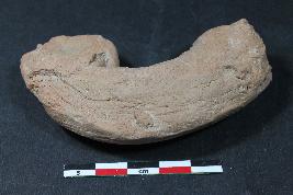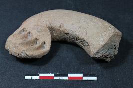 | Description / विवरण | Hand of a human figurine with prominent fingers marked by deep incised lines having rough surface. |