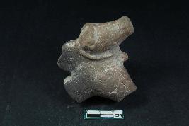 | Description / विवरण | A fragment of animal head identified as Bull having projected mouth, broken body and horns, prominent hump, applique ornamentation around neck and rough surface. |