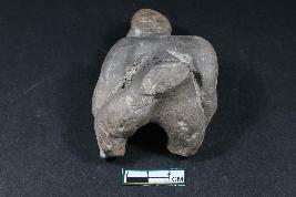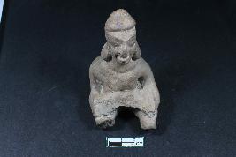 | Description / विवरण | A fargment of human figurine in seated position having prominent eyes and nose, fuller lips, bun on head, lonh applique ears, broken stumpy arms and rough surface. |
