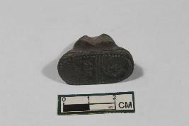 | Description / विवरण | Seal with deity symbol below it Brahmi inscription and knob on other side with hole having smooth surface. |