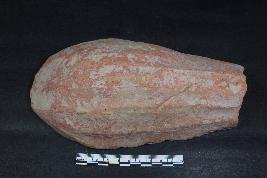 | Description / विवरण | Fragmentary Unidentified object with flat base, nearly round top and mild tapering from one one along with series of linear motives having rough surface. It seems to be used by the potters. |