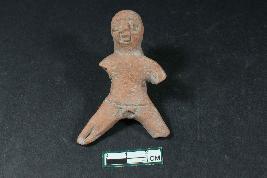 | Description / विवरण | A fragmentary human figurine having prominent incised eyes, mouth, broken and streched out arms, legs, deep incised line around it s waist and rough surface. |