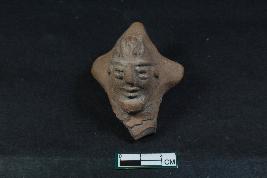 | Description / विवरण | Head of human figurine with conical headgear, applique eyes,pinched nose, puffer lips and prominent chin. It has pinched ears and incised line marks on its forehead having rough surface. |
