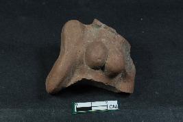 | Description / विवरण | Fragment of a headless female figurine with prominent bust and broken hands having rough surface. |