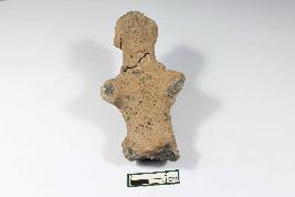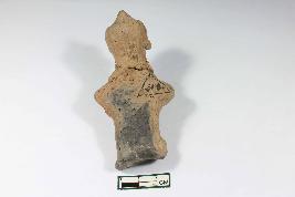 | Description / विवरण | Fragmentary human figurine with traces of facial features having rough surface. |