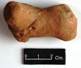 It is a fragment of a terracotta animal figurine. An ornamented band is observed around the neck of the figurine.Limbs and head is missing of the figurine.