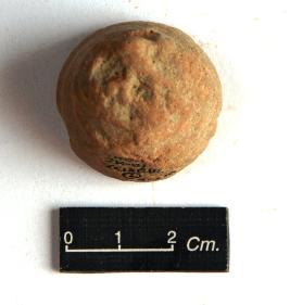 It is Games-men made of terracotta in dome shaped with flat base. Due to damaged on the surface it has become uneven. No decoration is observed on the surface.