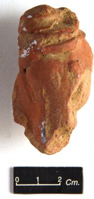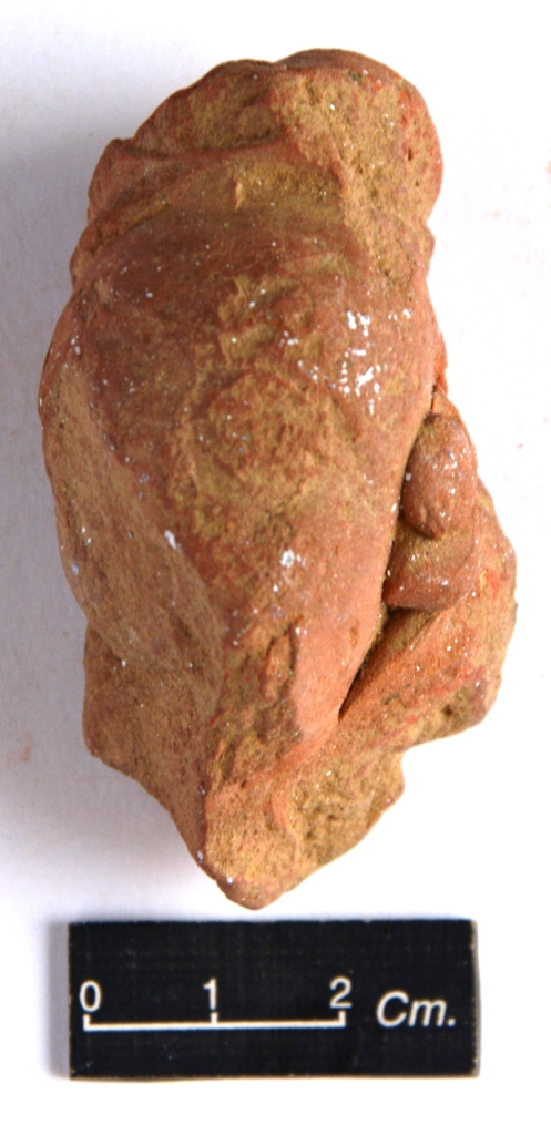 It is fragment of a female figurine made of terracotta. Torso is damaged with a part of the lower body present which is ornamented.