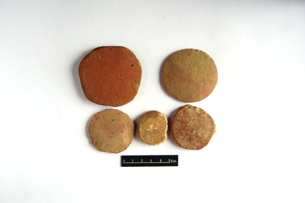these are five terracotta hopscotch. Surface is devoid of any decoration.
