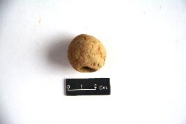 Circular terracotta bead with a central perforation. Surface is devoid of any decoration.