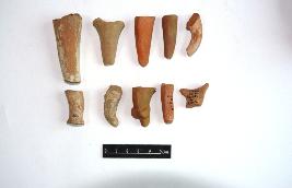 | Description / विवरण | There are 10 no s of Animal legs made of terracotta in different types and styles. The second line third is having a ornament. |