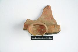 | Description / विवरण | Terracotta oval shaped lamp along with its attached lower body which broken. Surface of the object is devoid of any decoration or treatment.. |