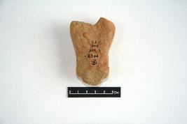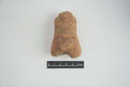 | Description / विवरण | Unidentified terracotta animal figurine with its fore limbs, head and back being broken. Remaining body is marked with upraised parallel line decoration on the back. |