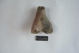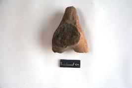 | Description / विवरण | Unidentified terracotta animal figurine with its hind limbs and back available which is marked with a dotted pattern. Rest body is missing. |