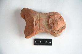 | Description / विवरण | Unidentified terracotta animal figurine with broken head and limbs. Rest body is devoid of any decoration except a vertical depressed line. |