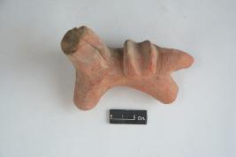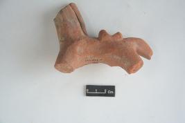 | Description / विवरण | Headless terracotta animal figurine with an elongated neck and thick applique band placed vertical to the neck is observed. A small saddle is placed on the back of the animal. A small thick tail can also be observed at the back. All the limbs are present with little damage. Body is devoid of any decoration. |