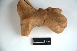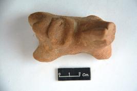 | Description / विवरण | Terracotta animal figurine devoid of its head and limbs are broken. Back of the figure is marked with a saddle.A small part of an elongated neck can be observed. Surface of the figurine is devoid of any decoration. |