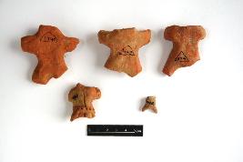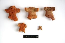 | Description / विवरण | There are five terracotta headless human figurine with incised decoration on their torso to mark the ornamentation.Body below the waist is broken. |