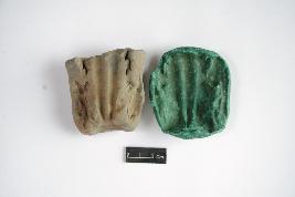 | Description / विवरण | It is a broken moulds depicting human legs. Body above the thighs are broken. Rest body is missing. |