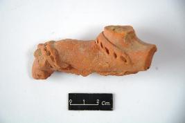 | Description / विवरण | Decorated with incised rope decoration camel head with damaged eyes. Body below the neck is broken and missing. Surviving object is devoid of any other decoration. |