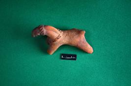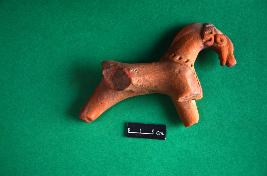 | Description / विवरण | Terracotta horse figurine with applique incised eyes and an incised band like decorations around the the neck and head. Rest of the body is devoid of any decoration. |